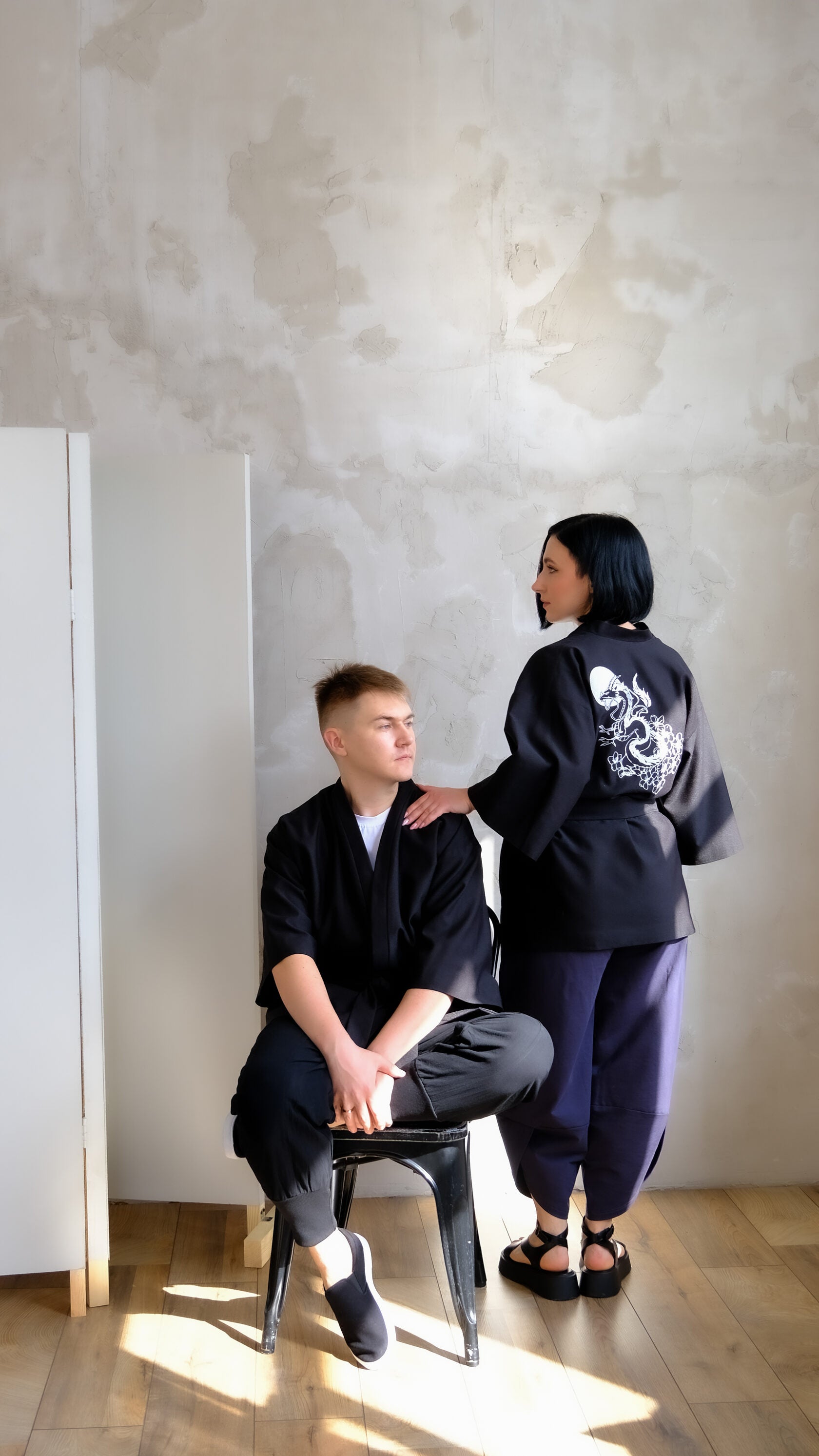 We’re inspired by Japanese silhouettes, symbols, and cultural codes. But we don’t copy — we reinterpret. Each piece is a dialogue between East and West. Where clean lines meet deep meaning. Where a shape becomes a statement, and a pattern — an idea. We believe clothing can speak. Our pieces speak of balance, mindfulness, and inner strength. You can simply wear them — or read them, like a text